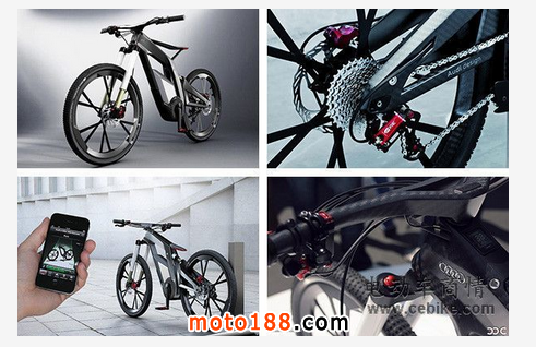 奧迪于2012年5月份推出了一款名為“Wörthersee”的電動概念自行車。它的最高時速可達80公里/小時,采用了賽車的設計原則,堪稱自行車家族的F1。