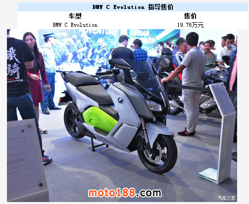 電動摩托車BMW C evolution配備8千瓦時大容量鋰離子高壓蓄電池,充滿一次電可行駛最多100公里;通過家用標準220伏/12安家用插座充電時,從無電到完全充滿大約需要4個小時(采用220伏/16安電源時僅需3小時)。