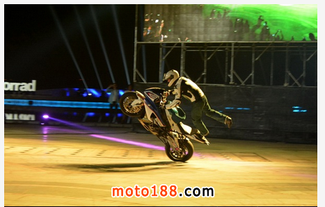美國摩托車特技表演大師 Chris ‘Teach’ McNeil 應(yīng)寶馬摩托車中國的邀請來到文化節(jié),為廣大車迷助興。Chris以突破想象的“逆天”特技,將不可能變?yōu)榭赡埽谝娴霓Z鳴、輪胎的尖叫聲中,一次次將車迷的熱情推向高潮!