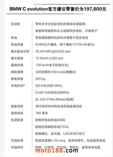 此次發(fā)布的BMW C evolution官方建議零售價(jià)為RMB 197,600元。