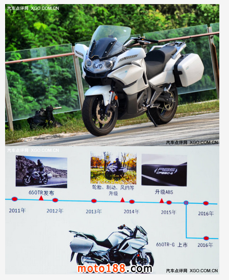 根據官方資料顯示,春風650TR-G國賓車民用版的發展歷程可以追溯到2011年的650TR上市,從2013年對輪胎、制動和風擋等方面的升級,到2014年配備上有效提升行車安全的ABS防抱死制動系統,再到現在令國人驕傲的春風國賓車,歷經4年進化,讓這款國產的大排量高檔休旅車不斷完善。剛剛推出的春風650TR-G國賓車-民用版的成為了經典之作。