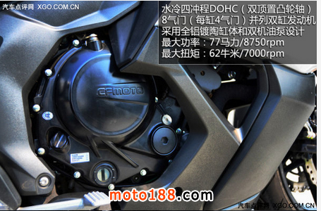 如果是中低速駕駛狀態,發動機低扭性能非常好,1-3擋往復,并不需要擰太多油門即可輕松應付,抵擋低速狀態下發動機震動有些大,有時候震動的甚至讓后視鏡都跟著“跳舞”。試駕日期是9月中旬,天氣還較熱,加寬的弧形水箱增強了發動機水冷系統的散熱能力,屁股感覺并不是有些車型那樣“火燒火燎”的。