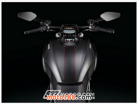 2016款Ducati Diavel Carbon唯一技術性的改動是頭段排氣,采用了Zircotec陶瓷涂層,座墊進行了重新設計。動力依舊搭載馬力為162匹的1198.4cc Testastretta 11°DS發動機,車重仍然為205kg。