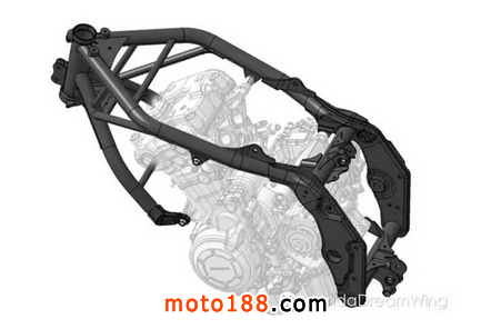 這部新車的脊梁是一付鉆石造型的35毫米鋼管梁車架,強壯而又輕巧,賦予全車一流的性能。后搖臂配備了與Honda旗艦超跑一脈相承的Pro-link漸進連桿式懸掛。后減震器帶有9級欲載荷可調,4.1英寸的行程足夠應對常見路面的挑戰。