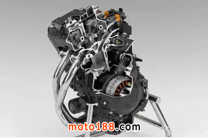 CB500F的動力源自于一具Honda最新開發的雙缸引擎,配備了雙頂置凸輪軸和水冷系統,活塞的直徑與CBR600RR相同,但行程加長,從而將471cc引擎的潛力發揮到極致,在寬闊的范圍內釋放出驚人的扭矩。