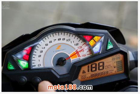 基本上與Ninja300同一顆儀表。但在沒有風鏡遮擋的情況下,有些微反光的現象,但不影響辨識度。