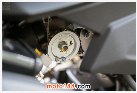 后避震多連桿設計是川崎在輕檔領域大受好評的基石之一。良好的連桿設計可以讓避震運作更加順暢,也讓全車的重心更為集中。