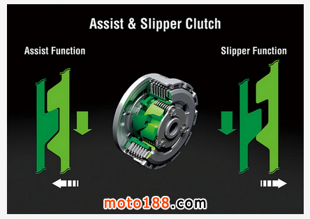 Z300與Ninja 300共享引擎,滑動離合器也是標準配備。滑動式離合器并不單單只是可滑動那么簡單,還有自動逼緊離合器的結構。除動力傳輸的表現較好,也可減少離合器的拉力,走走停停狀態下較不容易抽筋。