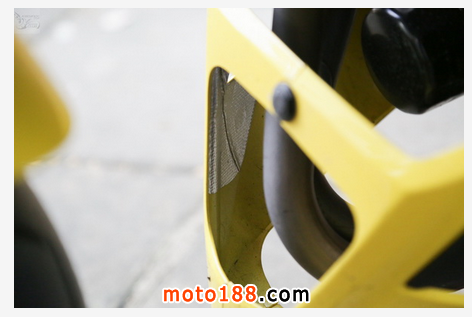 前煞車采用前單碟搭配單向雙活塞卡鉗與浪花碟盤,后煞車也是采用單二卡鉗。