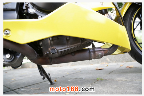 排氣管閃過正下方,搭配側邊泄油設計,方便車主DIY。