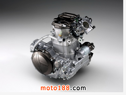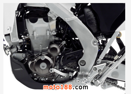 新的 WR450F 以市售越野賽車 2015' YZ450F 為基礎(chǔ)改造而成,故廠方對新車冠以 “ 耐力越野的風(fēng)格、YZ 的技術(shù) ” 之口號。與 YZ450F 相比,WR450F 在功率輸出特性、敏捷性、行使性能上設(shè)置以及整備重量方面有所不同,它采用一副與 YZ450F 相同的水冷四沖程后傾式單汽缸、DOHC 四汽閥的發(fā)動機(jī),排汽量 449 cc,反向式汽缸頭的設(shè)計(進(jìn)汽系統(tǒng)向前、排汽系統(tǒng)向后),節(jié)汽閥口徑為 44 mm 的電子燃油噴注系統(tǒng)、ECU 內(nèi)部數(shù)據(jù)經(jīng)過重新編程,五檔的齒輪箱采用了更寬闊齒輪比的設(shè)計(第一檔、第五檔的齒輪比與 YZ450F 相同)以及更耐磨的離合器。