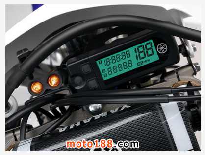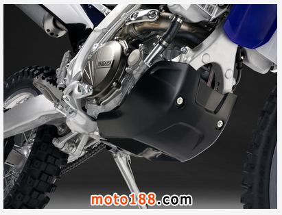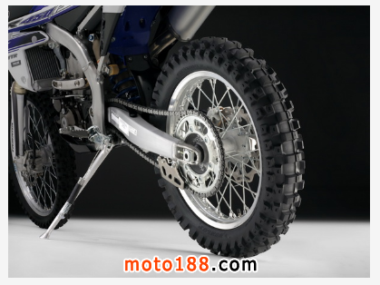 車身方面,采用了與 YZ450F 相同的車架/底盤與懸掛系統(tǒng)、但懸掛的設(shè)置略有不同。同時針對耐力越野的特殊性,為右側(cè)的散熱水箱配備了風(fēng)扇、發(fā)動機(jī)底部加裝了護(hù)板和電啟動裝置,多功能的小型數(shù)字式儀表板、車頭的大燈、后剎車燈等也一應(yīng)俱全,而這些都是越野賽車沒有的(或者說是不需要的)。全車的整備重量為 123 公斤,較 YZ450F 的 112 公斤要重。前、后輪框的規(guī)格也有所不同(WR450F 為前 21、后18,而 YZ450F 是前 21、后 19)。