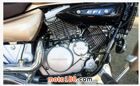 先從這款V型雙杠發動機說起,這臺發動機擁有249cc排量,夾角為75°,采用了油冷設計,動力方面顯然無法與哈雷750這個級別的對手競爭,但在250cc級別中,GV250的這款發動機還是非常有希望的。曉星公司將年輕玩家鎖定為這款車的目標客戶,他們表示對于入門玩家來說,700cc以上級別的車型對于騎手的要求比較高,而這款250cc的車型近乎有著全尺寸巡航車的外觀,同時250cc的發動機有著非常好的操控性,對新手的換擋操作有著極大的寬容度,可以很容易讓這些新人上手。
