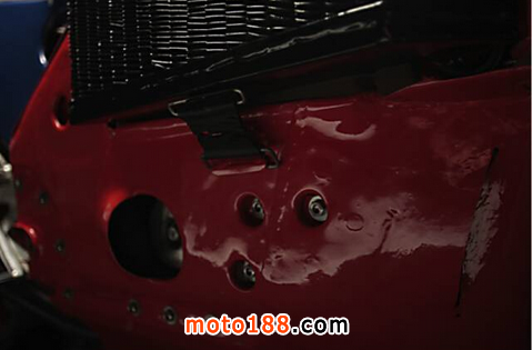▲車身包板表面固定發(fā)動機(jī)的螺絲,包板實(shí)際是車架的一部分