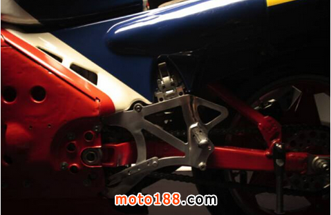 重量決定了比賽時的圈速。設(shè)計師把減重的目光投向了車架,他們要用1/4的重量,達(dá)到1倍的強(qiáng)度。于是在汽車上使用的承載式結(jié)構(gòu)概念,被引入到NR500的車架設(shè)計中。本田朝霞研究所的神谷忠為NR500研制了“蝦殼”式車架。所謂“蝦殼”式車架,就是以一層薄殼包裹發(fā)動機(jī),使發(fā)動機(jī)成為車架的一部分,從而提高強(qiáng)度,減輕重量。