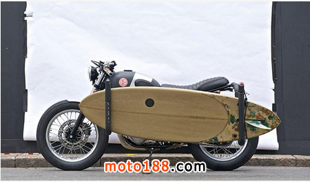 這款摩托車并不算是強壯肌肉型,它是為沖浪人群專門設(shè)計的,澳大利亞的陽光沙灘才是它的終點。它的外形在描述著浪花,也是簡潔大方的代名詞,還可以定制貼心的沖浪板支架。深紋路輪胎減震性能良好, deus ex-machina的設(shè)計師們也用一個循環(huán)式汽化器代替了車上所有的空氣通風(fēng)系統(tǒng)。