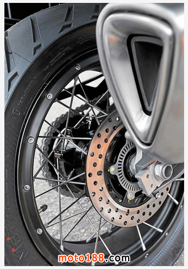 外觀上來看,19寸的帶輻條前輪使整車外觀上看起來更加的結實。