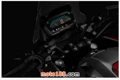 ●新設(shè)計(jì)的液晶體儀表,新的Showa前叉頂擁有比上一代精致的設(shè)計(jì),比上一代高70mm風(fēng)鏡相信有更佳擾流效果。