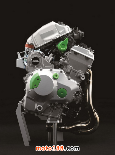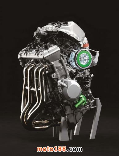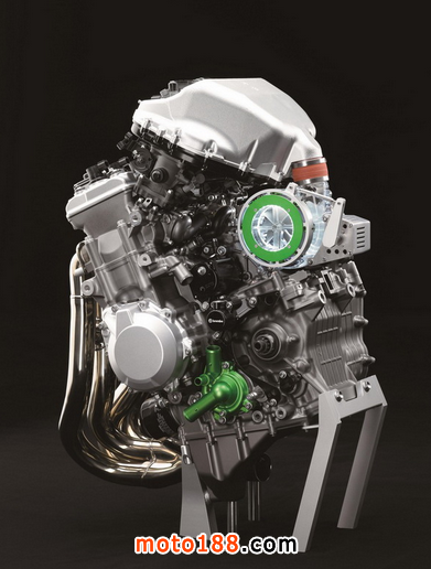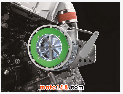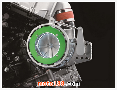 下圖:2016' Ninja “ 忍者 ” H2/H2R 發動機及其新的電子控制閥門渦輪增壓系統的特寫。