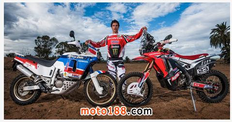 ●前是新款2016 HONDA CRF1000L Africa Twin,后是現役HONDA達卡戰車。