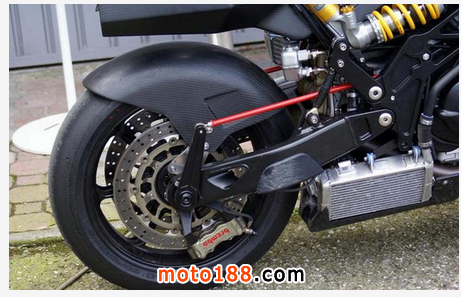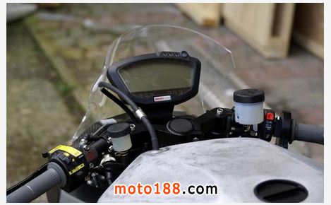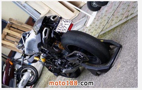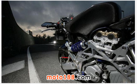 留意即使在行車時也可以不斷調較,如此便可以因應輪胎溫度而微調最適合的tractioncontrol。Vyrus的tractioncontrol更有launchcontrol功能,斗靜止起步時,launchcontrol便可以在輪胎打滑前的最大極限去提供動力。Vyrus987采用16寸半Marvic鍛造合金輪圈,并配備PirelliDiabloSuperbikeslicks輪胎。馬力驚人的Ducati1198R引擎換上Zard死氣喉,讓馬力再增加10匹至194hp。我試騎的987并沒有指揮燈或其他燈件,輪胎也是賽車級的slick胎,全車濕重只有155kg。換句話說,每公斤車重能分配到1.25hp,即使把我的體重算進去,每公斤車重仍能分配到0.79hp,在出發前,我不禁向天高呼:神啊,你待我真的太好!