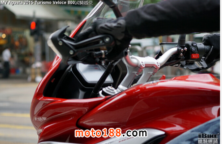 請容許我們對Turismo Veloce 800的舒適再詳細(xì)解釋一下:新車的轉(zhuǎn)向把手,有一個升起向后傾的軑碼,讓騎士無需前傾,雙手自然地放在把手上。挺直的上身,帶來廣闊的視野。比起其他MV車款,Turismo Veloce 800的把手最高,最接近騎士,讓駕駛者可以保持一個放松的駕駛姿勢,對長途行車有絕對的幫助。高置的轉(zhuǎn)向把手也起著杠桿作用,操控車體時更覺輕盈慳力。舒適的享受還有來自全MV陣營最厚最闊的座墊,立體裁剪的造型提供全方位承托,把騎士舒適地固定在車上,不會跣前跣后。