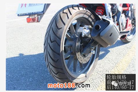 國產(chǎn)胎中用的最多的還是正新和建大,小黃龍250采用的是遠(yuǎn)星140/60-17的后胎,相對價(jià)格來說,遠(yuǎn)星比另外兩個(gè)牌子的要便宜,畢竟為了節(jié)約成本,我們等下來看看它的騎行效果怎么樣。
