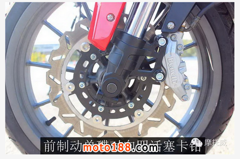 這個(gè)時(shí)候我要吐槽一下這個(gè)排氣,跟小踏板似的,真是極丑的,一輛250cc的街車沒有跑車一樣的外觀還配這樣的排氣這讓外觀控的車友們怎么理解。然而前制動(dòng)的碟剎盤和卡鉗卻很好看,卡鉗上清晰的印著Benelli,小黃龍沒有像黃龍300那樣配備雙碟剎,但是對于輕量級的250街車來說制動(dòng)能力已經(jīng)足夠了。