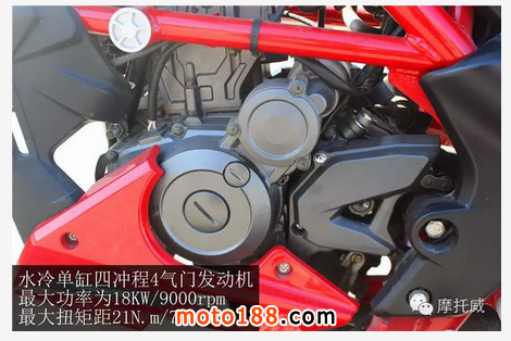 小黃龍250搭載的是249mL電噴水冷、四沖程、單缸、頂置式雙凸輪軸單獨(dú)開發(fā)的一款發(fā)動(dòng)機(jī) ,最大功率18kW,最大扭矩21N·m,整車動(dòng)力非常強(qiáng)大。在試車的時(shí)候,提速想當(dāng)快,因?yàn)槭菃胃自偌由宪嚿磔p,我敢說小黃龍250百公里加速一定不遜于黃龍300。