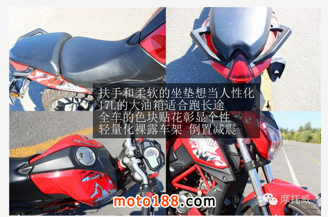 790mm的標(biāo)準(zhǔn)座高和舒服的騎行姿勢,這也是小黃龍一個(gè)優(yōu)點(diǎn),單缸發(fā)動(dòng)機(jī)起步有點(diǎn)猛,怠速?zèng)]想象中那么穩(wěn),發(fā)動(dòng)機(jī)排氣聲音稍大,整車振動(dòng)也很明顯,倒置減震效果還行,這方面性能都跟不上黃龍300,畢竟價(jià)格配置在那,250跟300排量提速差不多,價(jià)格卻相差近1萬。