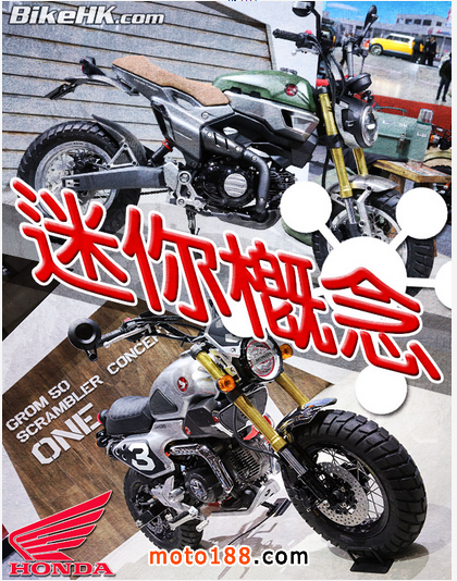 近年車廠除了發展跑車之外,同時亦轉向玩味較重的迷你車款。即使配上125cc引擎亦將車身造得非常小巧。Honda在今回東京車展之中,就展出了兩款GROM 50概念車再加一臺GROM 125的概念車。或許大家對GROM這個名字較陌生,但GROM 125其實就是MSX125的另一個名字而已。