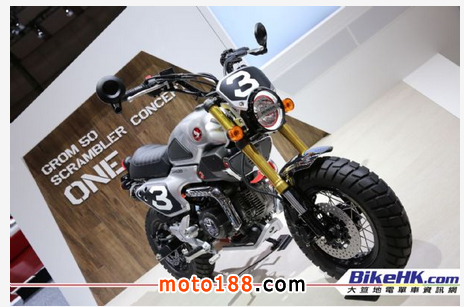 這臺GROM 125的概念車可說是姍姍來遲,當MSX125推出市場時,玩家們一早已改得比這臺車更天花龍鳳。不過,車身兩邊加入金屬飾片,鴨尾的線條又改成賽車版的單座鞍,這算是最引人入勝之處吧。