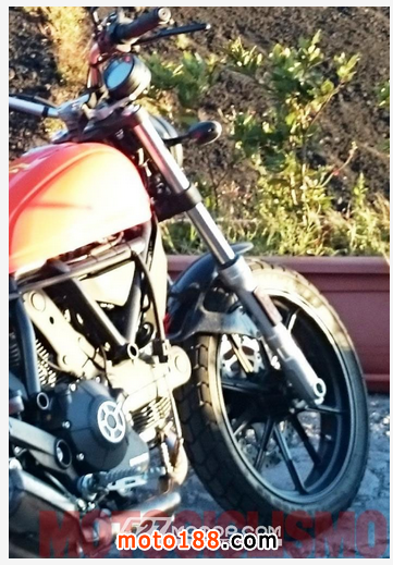 前些天傳聞的杜卡迪小排量Scrambler近日被意大利媒體拍到了,新車外觀幾乎與目前在售的車型一致,但是發(fā)動(dòng)機(jī)將采用400cc小排量發(fā)動(dòng)機(jī),當(dāng)然還是90度夾角的L型雙缸風(fēng)油冷!
