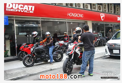受臺風及天雨的影響,Ducati 試車日一再改期,直至今天(11月8日)終於順利舉行,同樣吸引許多車迷用家參與。其實,Ducati HK陳列室一直提供許Ducati車系預(yù)約試駕服務(wù),只需有個人保護裝備及駕駛經(jīng)驗 (基於安全理由,學牌及P牌不能預(yù)約試車),就可以預(yù)約指定時間試車。所以,即使錯過今天Ducati 試車日的車迷,也可致電Ducati HK吧﹗