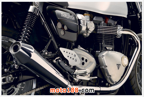 全新年式一樣分為Thruxton與Thruxton R兩種版本,同樣搭載著取代865c.c.的1200c.c.八汽門水冷直列雙缸引擎,峰值扭力大幅提升至11.4kgm/4950rpm,雖然目前原廠尚未公布馬力數據,但一舉跨過公升級之后動力輸出更強悍是無庸置疑。而T120系列也一并得到此新引擎,水冷引擎不僅通過了Euro4環保法規,運行上更加順暢,效能也更好。