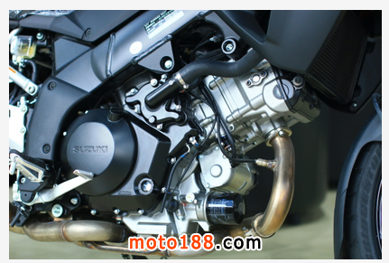 以2002款V-Strom 1000四氣門DOHC九十度V型雙缸發動機為原型,活塞直徑由98mm增大到100mm,排氣量也由996cc增大到1037cc。來自發動機的革新可遠遠不止一項簡單“擴容”,氣缸,氣缸蓋、活塞、活塞環、活塞銷、連桿、曲軸、曲軸箱、磁電機、飛輪、傳動、雙火花塞并配置離合器輔助等諸多革新改進,可以講2014款V-Strom 1000搭載的是一款近乎于全新設計的發動機。10孔噴油嘴替代4孔噴油嘴,ECU等供油系統進行全新匹配,最大功率73kW/8000轉,最大扭矩103N.m/4000轉,2014款V-Strom 1000增大動力輸出的同時降低了相對轉速,中低轉速扭力輸出更加強勁。