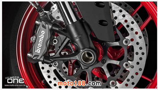 ●2 x 320mm半浮動碟配Brembo Monobloc M4 4活塞卡鉗 ,配ABS功能。