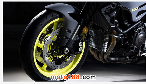 MT-10也有三個馬力模式的D-MODE,分別是最大馬力的A Mode、標準Mode及濕地的B Mode,還有可關掉的循跡系統,同樣有三個介入模式供選擇,分別是最少介入的Level 1、中間的Level 2及最大介入的Level 3,三個模式同樣可降低油門操控失誤造成打滑的危險。而KYB的43mm倒立前叉及單筒尾避震同樣提供全調校功能,前320mm煞車碟配Nissin 4活塞煞車卡鉗及尾220mm煞車碟配單活塞煞車卡鉗的規格,與R1相同。