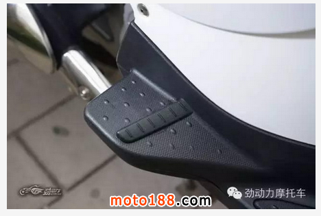 與那些“小踏板”不同,這三個大家伙都為后座乘客準(zhǔn)備了“體面”的腳踏,尤其以圣甲蟲寬大的固定式踏板顯得最為實(shí)在,而城市之星和賽艇300的踏板都是可以像傳統(tǒng)摩托車那樣折疊收起。