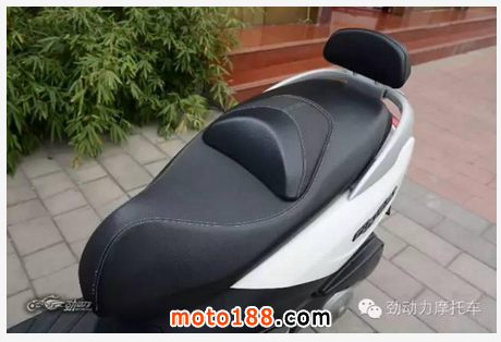 還是賽艇300的車座最讓人滿意,三款車中車身最大,車座也是當(dāng)仁不讓,其寬大程度和舒適性甚至可以與許多豪華旅行車媲美,柔軟舒適得就像是一個大沙發(fā),坐過它之后你就再也不想把屁股挪到另外兩款車上了,就連后座乘客也是同樣的想法。更讓人欣慰的是,車體最大的它,坐高卻是三車中最低的,只有780毫米,“矮騎手”們現(xiàn)在也可以輕松騎上“大踏板”了!