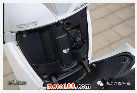車座面積最大的賽艇300自然也就有著三車中最充足的座下空間,其座下儲物箱可同時放入一頂全盔和一個大號的雙肩背包。此外,支撐車座的液壓桿和座下儲物箱內(nèi)的LED照明燈也讓它顯得更加精致和體貼。