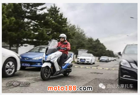 不過,在上下車時賽艇300可不如城市之星和圣甲蟲那樣方便,油箱前置的結(jié)構(gòu)占用了踏板中部的空間,上下車時需要跨過高高隆起的油箱,或者干脆像傳統(tǒng)摩托車那樣騎上去。另外,讓我沒有料到的是,擁有大型踏板車身材的賽艇300,其腿部空間真沒有我想象中的大,即便采用巡航坐姿,我1.83米的身材還是伸不開腿,估計是按照大多數(shù)臺灣地區(qū)同胞的身材設(shè)計的吧?