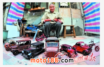 鄺伯把做好的車拿到家門口展示,坐擁各款名車,忙碌的鄺伯依然開心。