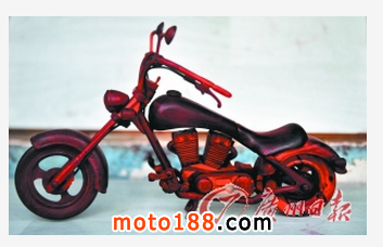 這個車展沒有美女車模,只有車的制造者鄺伯在現(xiàn)場為街坊們作詳盡介紹。“這輛車用紫檀木制作,最為昂貴,而這部摩托車不要看用料少,其實花費(fèi)的心思卻最多,因為有很多精細(xì)的部件。你看這個木制的鑰匙還能拔出來……”