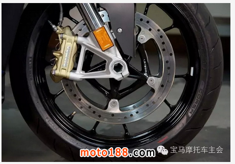 S1000R剎車規格非常之高, 事實上可以說因為太過敏感甚至有點影響到剛上手時是否可以適應如此強大的咬合力。