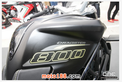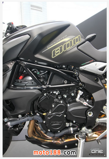 一副引擎演變多款車輛的手法,相信是大勢所趨,雖然Dragster 800是源自同廠的Brutale 800,驟眼比較兩車的圖片雖然十分相似,但Dragster 800的車身細(xì)節(jié)及車尾卻經(jīng)過全新設(shè)計(jì),并且采用公升級200/50-17闊輪胎,而BRUTALE 800則是180/55-17輪胎。新設(shè)計(jì)部件包括可調(diào)校前後角度軑及手擋,使車輛有點(diǎn)像Supermoto的感覺,其余還有新前泥擋、10柱式輪框、新 加肚兜及新腳踏等等,車尾還移除了尾牌架,并加裝至尾輪胎後方位置。