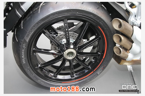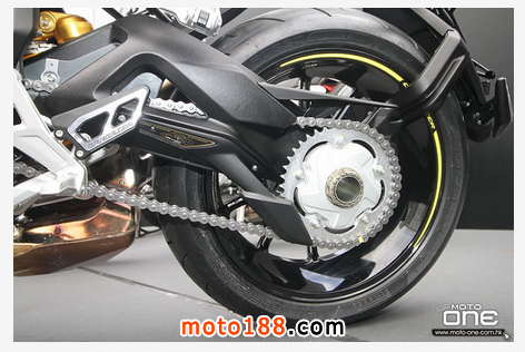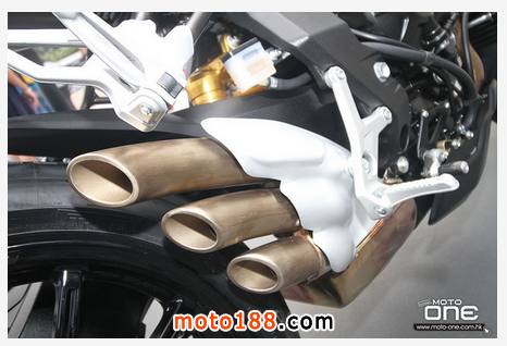 ●800cc用上200闊尾胎,尾牌架也移至輪胎後,還有單尾擔(dān)及獨(dú)一無二的三槍排氣管。