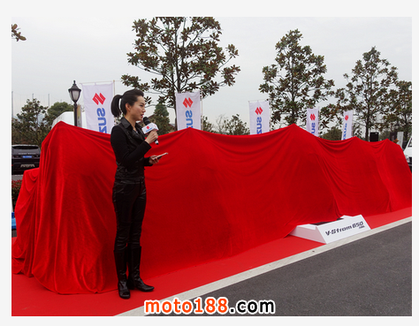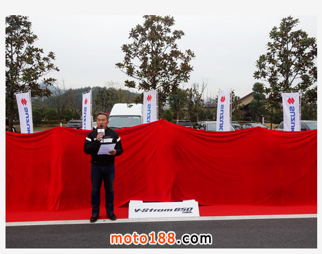 鈴木(中國)投資有限公司副總經理下位啟介先生揭開紅蓋頭,SUZUKI V-Strom 650 首次出現在中國媒體面前。
