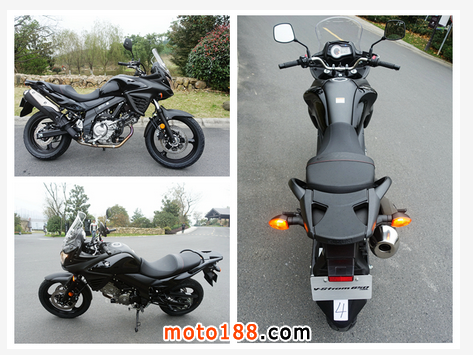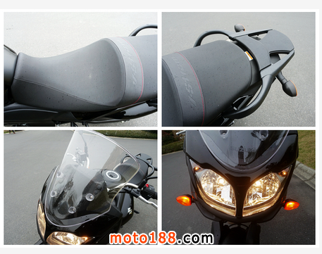 V-Strom 650的座椅厚實且舒服,甚至會產生一種騎著踏板的感覺。急加速時,座椅的凹部甚至可以給車手提供支撐力。后部行李架采用的是樹脂類的輕型耐磨防滑材料。前大燈的設計避免了任何反射效果不好的光板,有效的提高了光源的折射,加大了夜間行車的可視范圍。