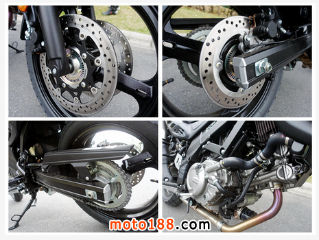 大尺寸的前雙后單碟剎讓 SUZUKI V-Strom 650的安全性能大大提高 ,傳統的鏈條設計也較為可靠易于維護。
